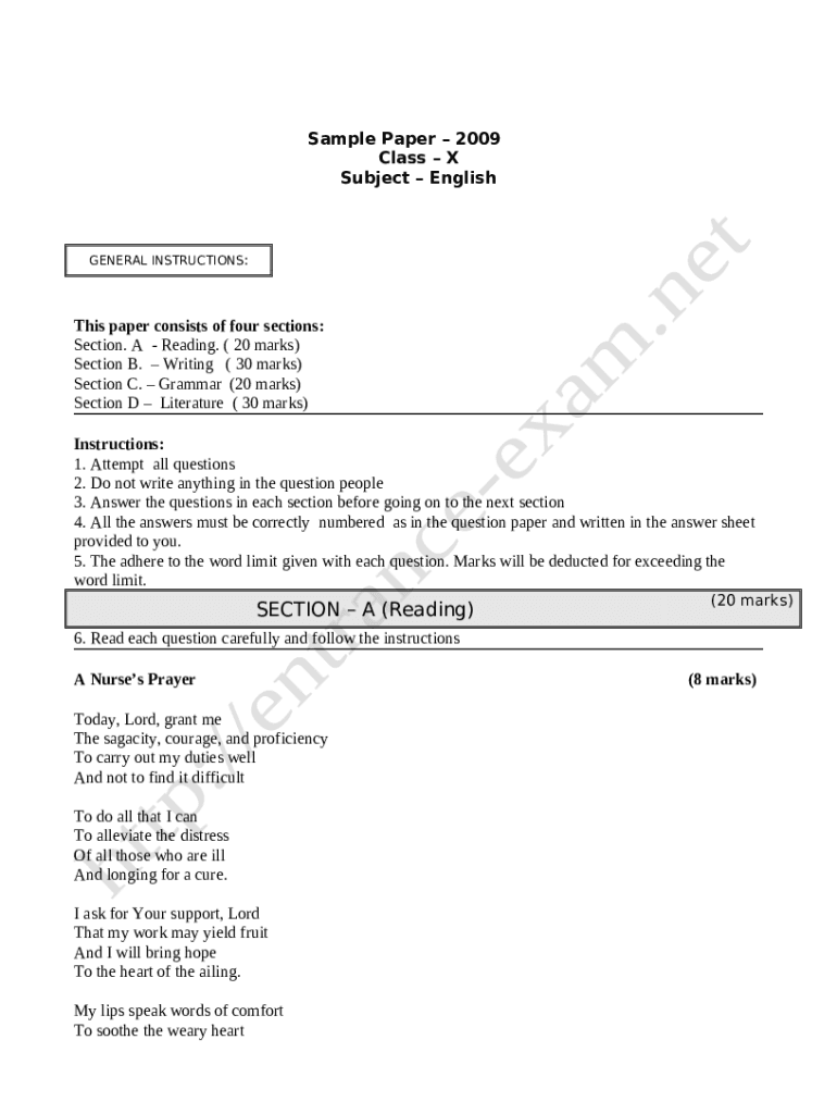 EnglishSample Question Papers for Online Examinations template instructions