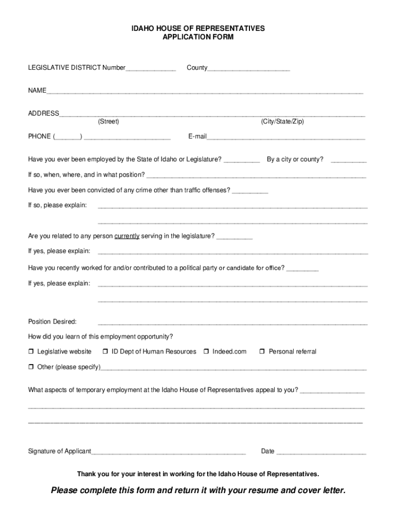 Get the free idaho house of representatives application form - legislature idaho