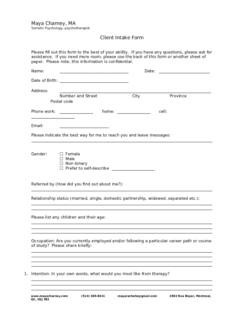 What is Maya CharneyMind-Body Psychotherapy Form?
