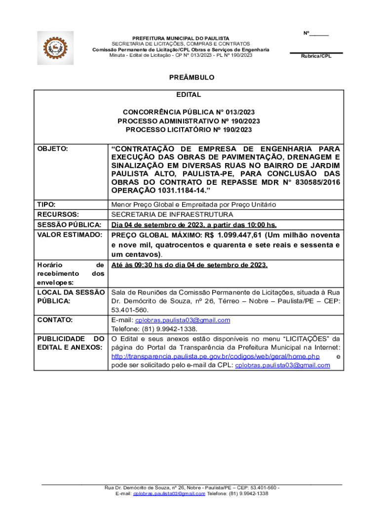 Minute Edital de Licitao CP N 013/2023 PL N 190/2023Rubrica/CPLPREMBULO