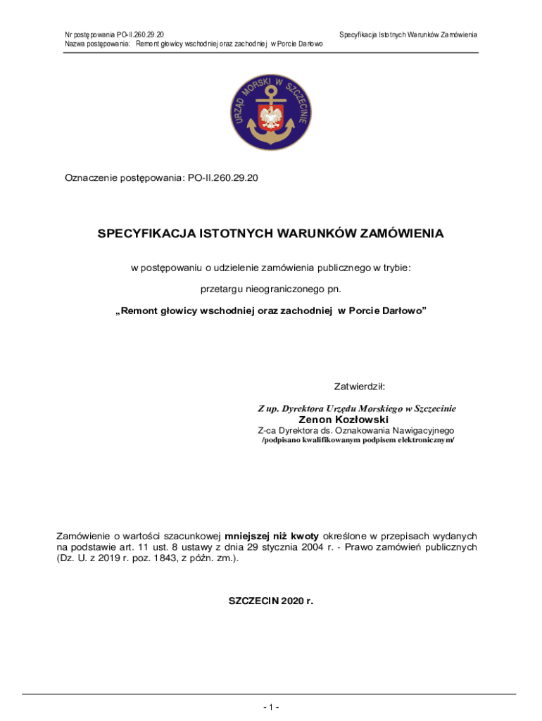 Nazca postpowania: Fremont policy wschodniej oral zachodniej w Porcine DarowoSpecyfikacja Istotnych Warner ZamwieniaOznaczenie postpowania: POI.260.29.20SPECYFIKACJA ISTOTNYCH