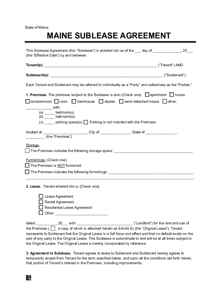 State of Maintain SUBLEASE AGREEMENT This Sublease Agreement (this Sublease) is entered into as of the ___ day of ___, 20___ (the Effective Date) by and between: Tenant(s): ___ (Tenant) AND Subtenant(s):