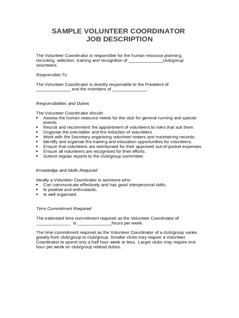 What is sample volunteer coordinator job description Form?