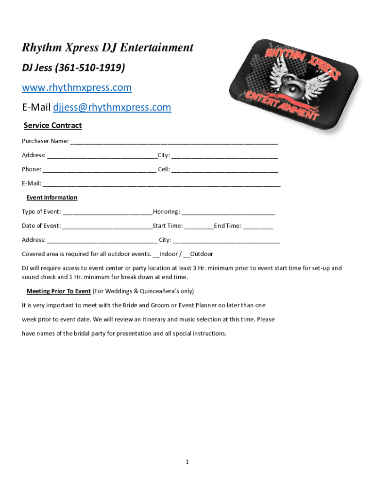 Email, fax, or share your rhythm xpress dj entertainment form via URL. You can also download, print, or export forms to your preferred cloud storage service.