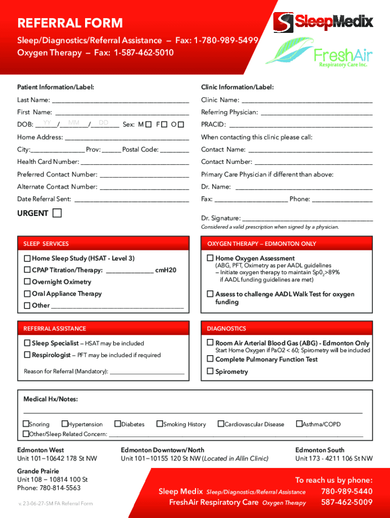 Get the free Referral Form - FILLABLE - Sleep Medix