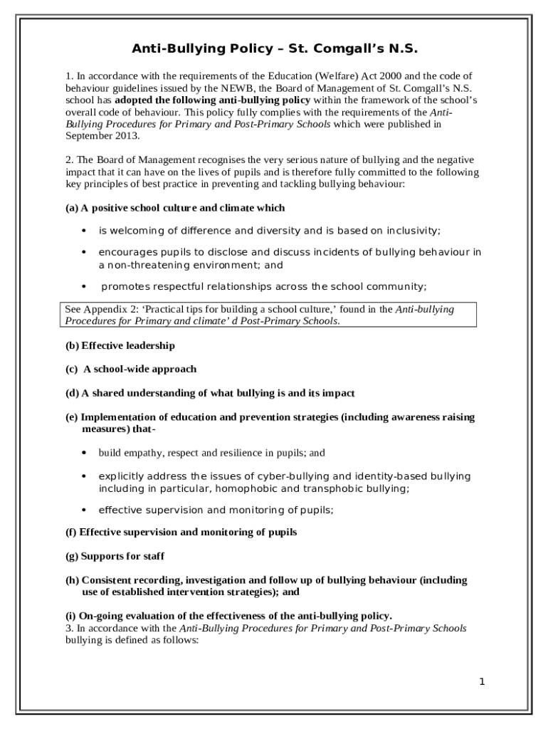 Instructions for the Anti-Bullying PolicySt. Comgall's NS form