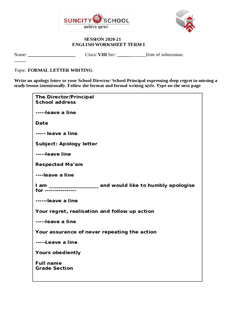 Instructions for the form ENGLISH WORKSHEET TERM I
