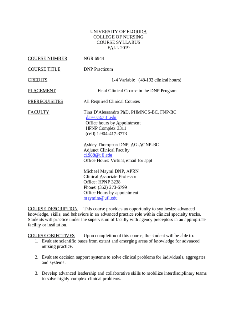 Nursing, D.N.P. - University of South Florida - Acalog ACMS - nursing ufl word template: frequently asked questions