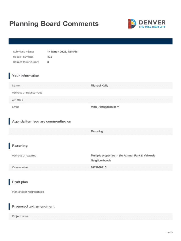 Planning Board CommentsSubmission date:14 March 2023, 4:54PMReceipt number:492Related form version:3Your information