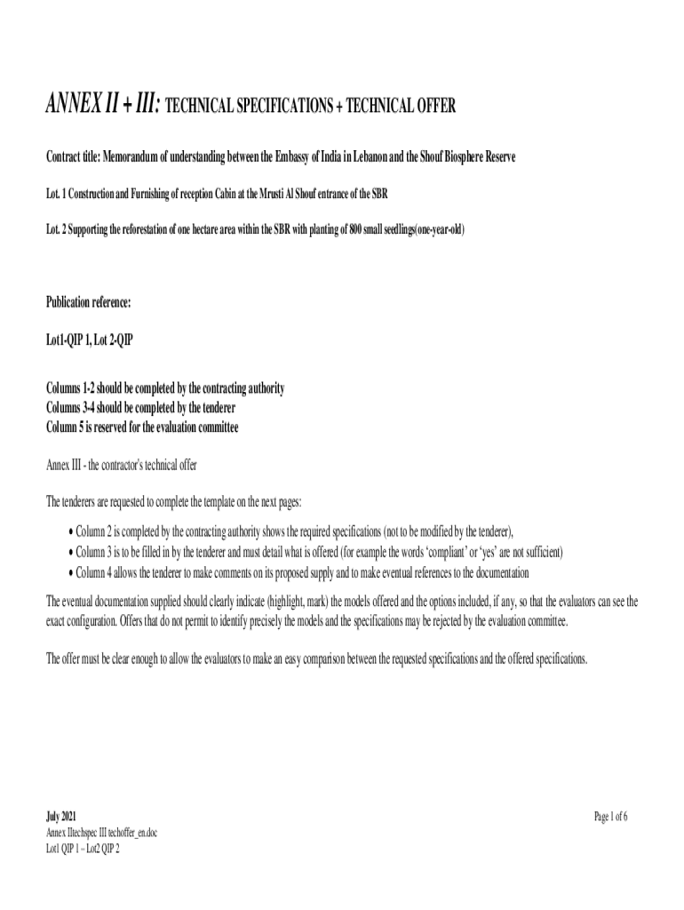 ANNEX II + III: TECHNICAL SPECIFICATIONS + TECHNICAL OFFER