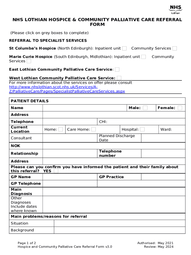 The Hospice and community e-referral is a writable document you can get filled-out and signed for specific purpose. Then, it is provided to the exact addressee to provide some details and data. The completion and signing is available or using a suitable application e. g. PDFfiller. Such applications help to submit any PDF or Word file without printing out. It also allows you to customize it according to the needs you have and put an official legal e-signature. Upon finishing, the user sends the Hospice and community e-referral to the recipient or several recipients by email and also fax. PDFfiller has got a feature and options that make your Word form printable. It provides different settings for printing out. It does no matter how you'll file a form - physically or by email - it will always look well-designed and firm. In order not to create a new file from the beginning every time, turn the original Word file as a template. After that, you will have a rewritable sample.