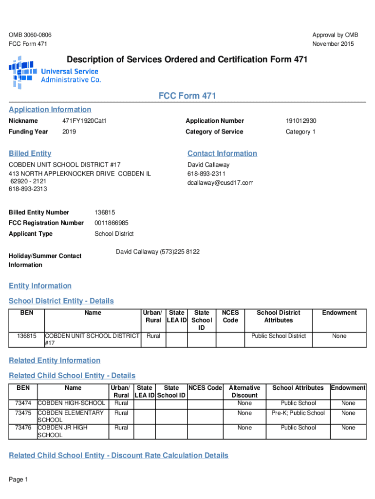 November 2015Description of Services Ordered and Certification Form 471FCC Form 471