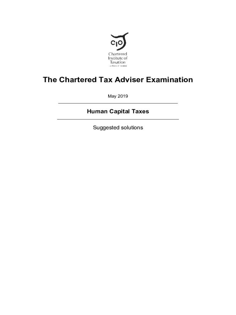 The Chartered Tax Adviser Examination May 2019 ___Human Capital Taxes___Suggested solutionsANSWER 1 To: From: Date: Subject:Malcolm Stratton Team Member May 2019 Remuneration package options for Sharon