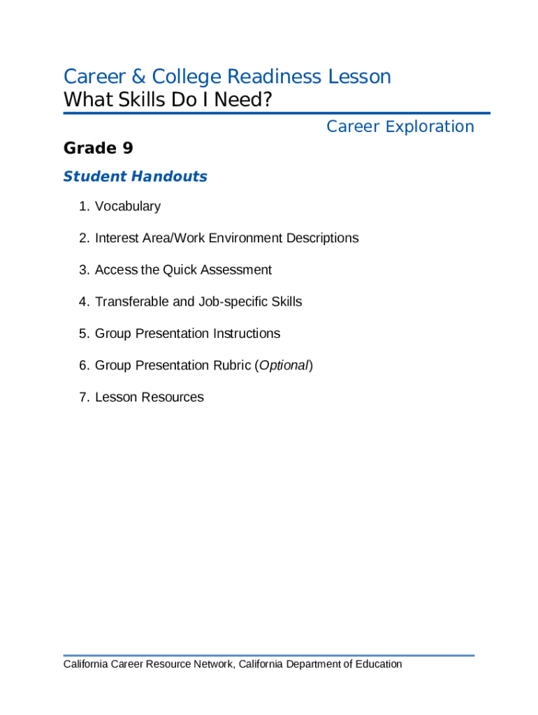 Interest Area/Work Environment Descriptions template instructions
