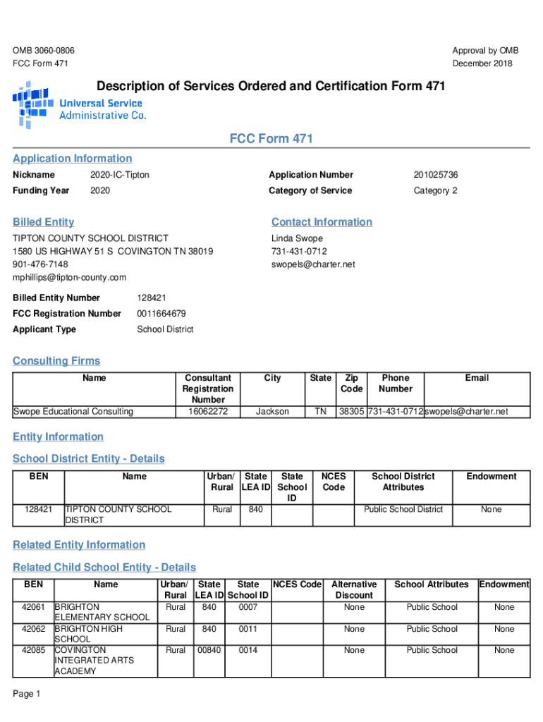 December 2018Description of Services Ordered and Certification Form 471FCC Form 471