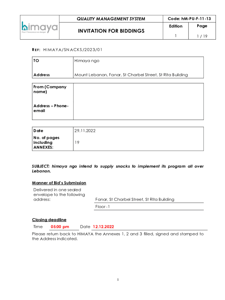 QUALITY MANAGEMENT SYSTEMINVITATION FOR BIDDINGSCode: hMPUF1113