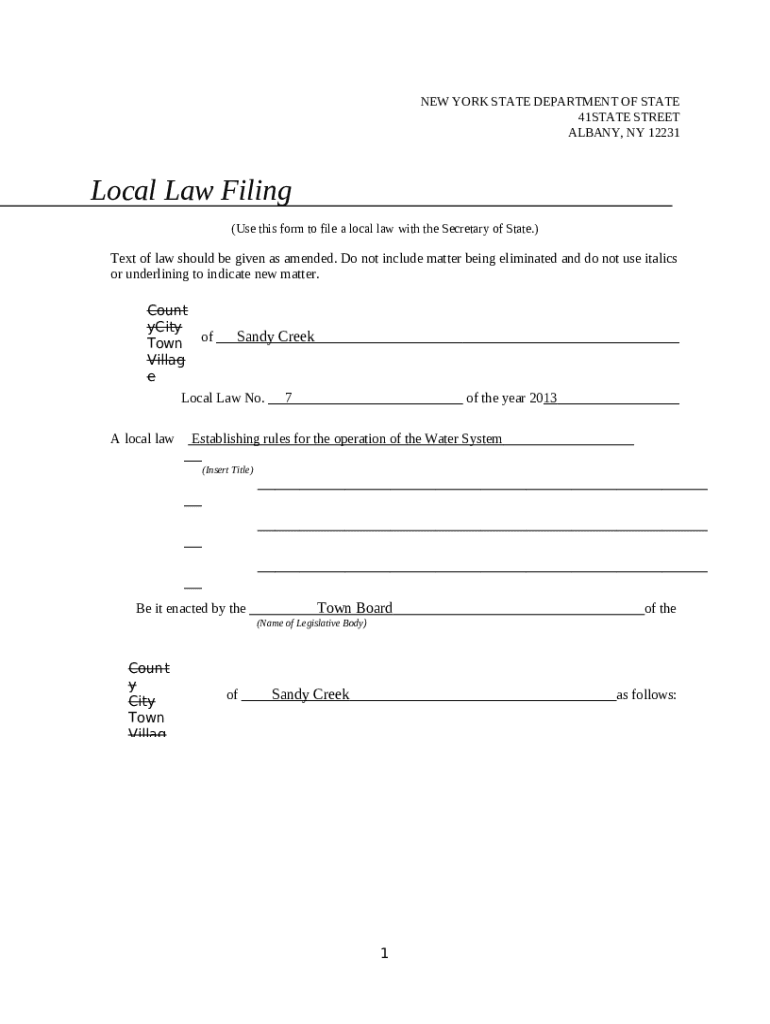 (Use this to file a local law with the Secretary of State.) - ... template instructions