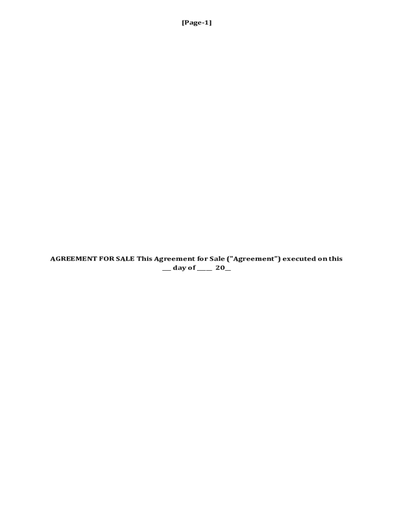 [Page1]AGREEMENT FOR SALE This Agreement for Sale (\"Agreement\") executed on this ___ day of ___ 20__[Page2]THIS AGREEMENT FOR SALE IS EXECUTED ON THIS ___DAY OF ___, 20 BETWEEN (1) MR. SHAYAN KUMAR