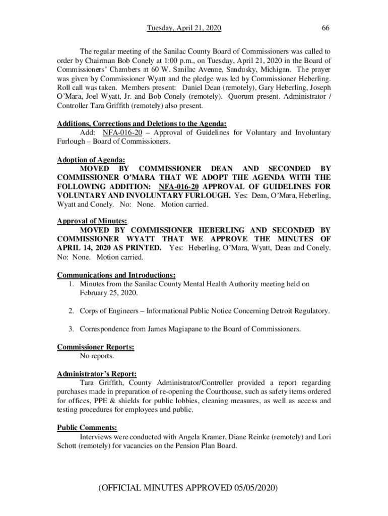 Tuesday, April 21, 202066The regular meeting of the Manila County Board of Commissioners was called to order by Chairman Bob Lonely at 1:00 p.m., on Tuesday, April 21, 2020, in the Board of Commissioners