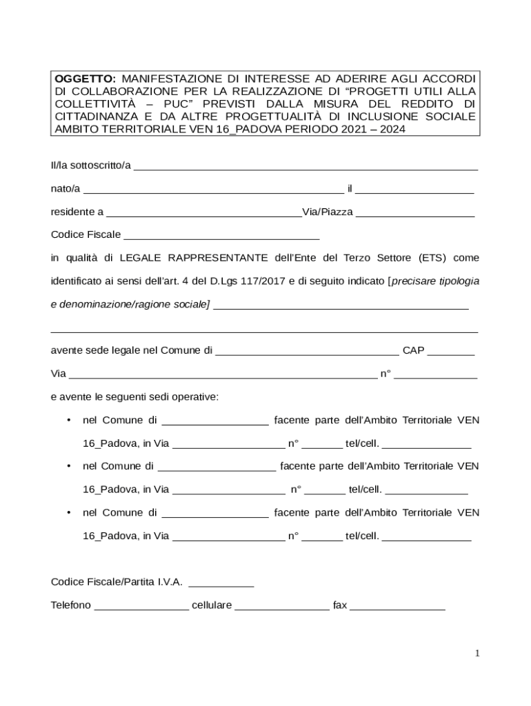 How to fill progetti utili alla collettivit - manifestazioni di interesse degli ... word template