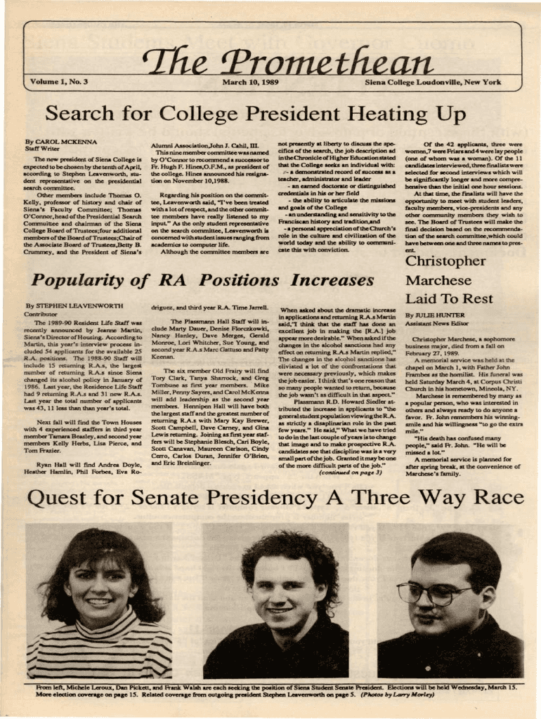 March 10,1989Siena College London Villa, New Research for College President Heating Up