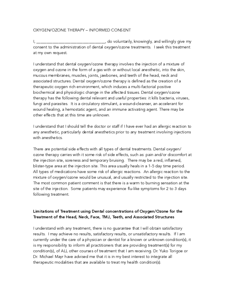 Get the free Oxygen/Ozone Use Consent Form