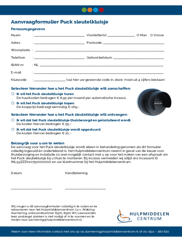 Hoe vul je aanvraagformulier puck sleutelkluisje in?