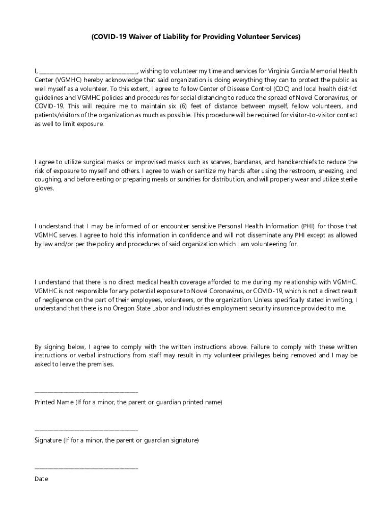 Get the free (COVID-19 Waiver of Liability for Providing Volunteer ...