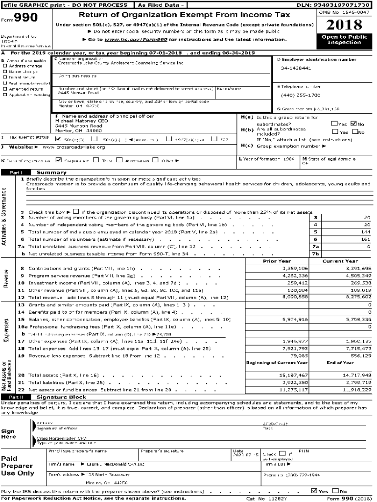 File GRAPHICrint DO NOT PROCESSION:93493197071730As Filed Data 0 MB No 15450047Return of Organization Exempt From Income TaxForm9902018Under section 501(c), 527, or 4947(a)(1) of the Internal Revenue