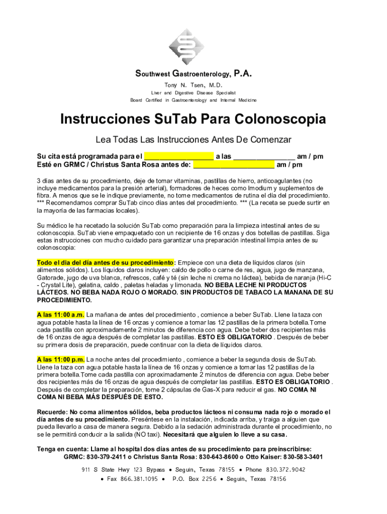 Cómo completar sutab instructions spanish online