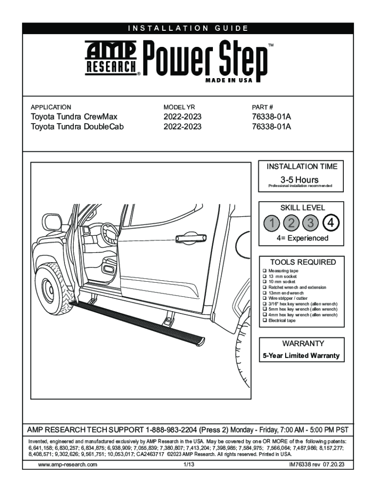Toyota Tundra DoubleCab202220237633801AINSTALLATION TIME35 HoursProfessional installation recommendedSKILL LEVEL12
