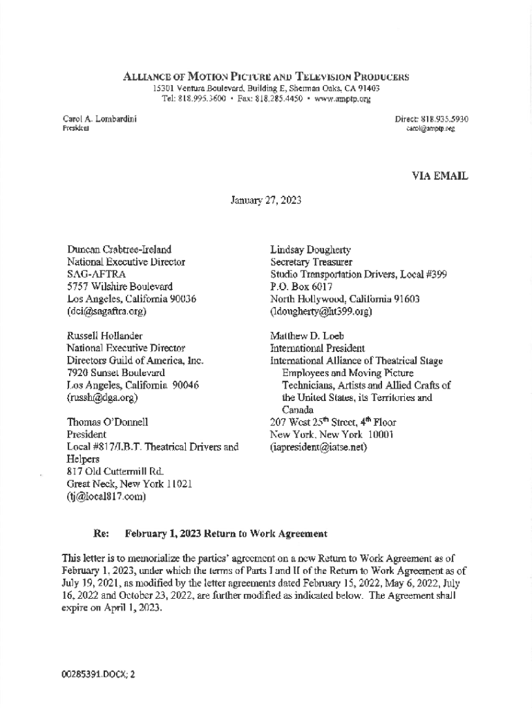 Tel: 818.995.3600 Fax: 818.285.4450 www.amptp.orgCarol A. LombardiniDirect: 818.935.5930Presidentcarol@amptp.orgVIA