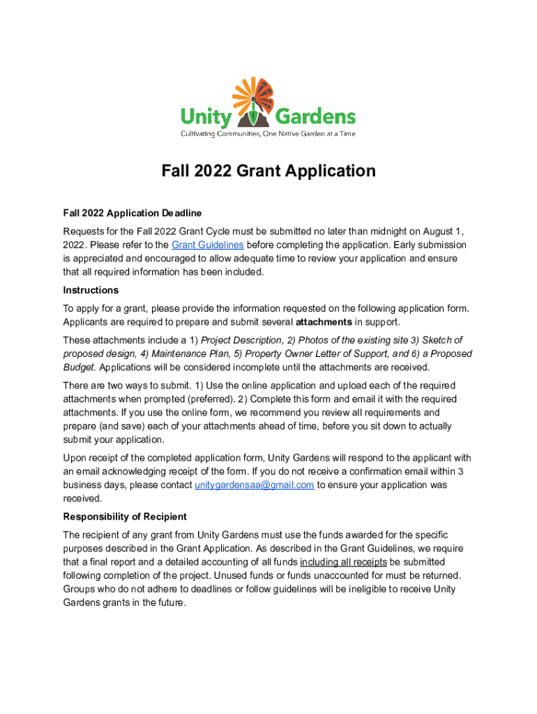 Fall 2022 Grant Application Fall 2022 Application Deadline Requests for the Fall 2022 Grant Cycle must be submitted no later than midnight on August 1, 2022. Please refer to the Grant Guidelines before