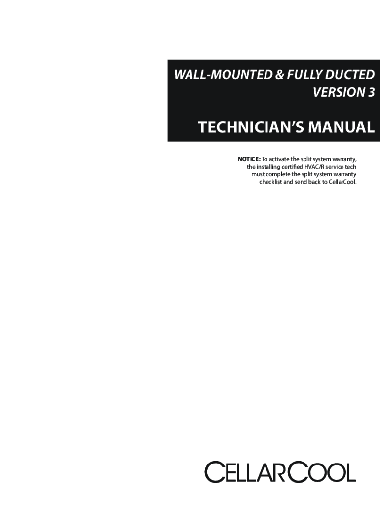 WALLMOUNTED & FULLY DUCTED VERSION 3TECHNICIANS MANUAL NOTICE: To activate the split system warranty, the installing certified HVAC/R service tech must complete the split system warranty checklist