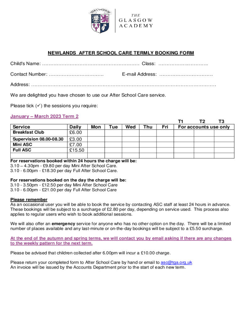 Get the free Newlands After School Care Termly Booking Form