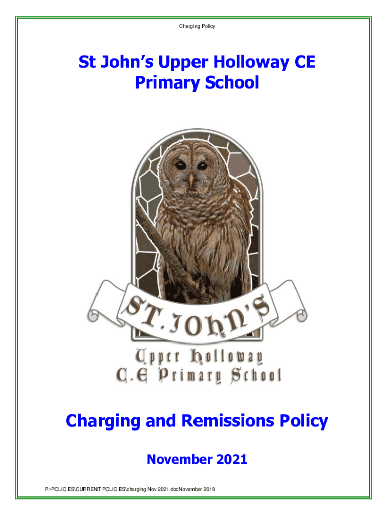 Charging Policy St Johns Upper Holloway CE Primary SchoolCharging and Remissions Policy November 2021 P:POLICIESCURRENT POLICIES charging Nov 2021.doc November 2019Charging PolicyPolicy updated and