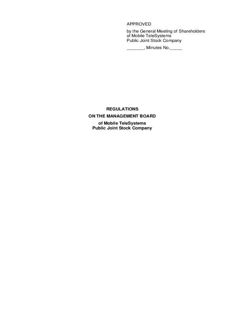 APPROVED by the General Meeting of Shareholders of Mobile TeleSystems Public Joint Stock Company ___, Minutes No.___REGULATIONS ON THE MANAGEMENT BOARD of Mobile TeleSystems Public Joint Stock Company1.