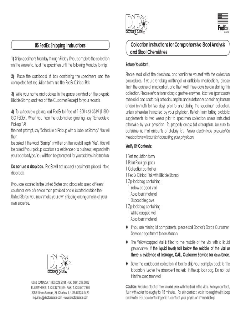 Get the free Collection Instructions for Comprehensive Stool Analysis ...