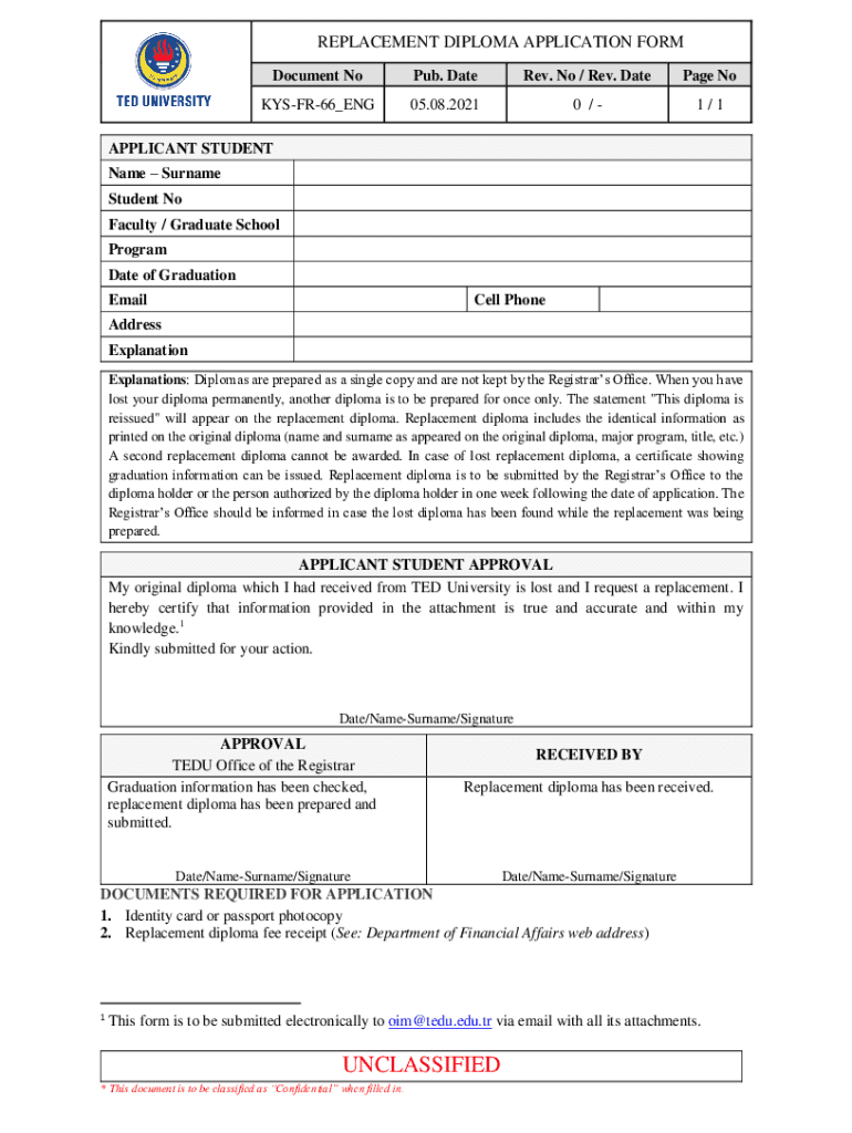 REPLACEMENT DIPLOMA APPLICATION FORM
