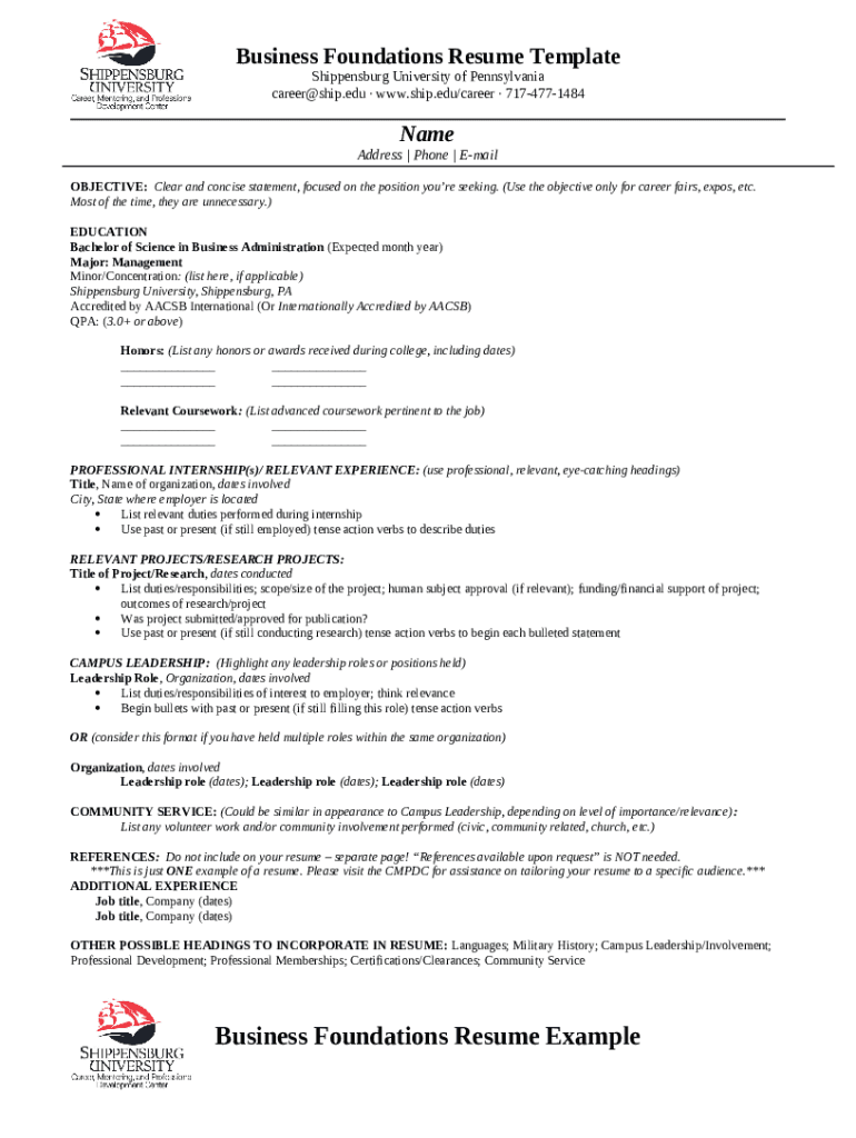 Instructions for the Math Resume Template form