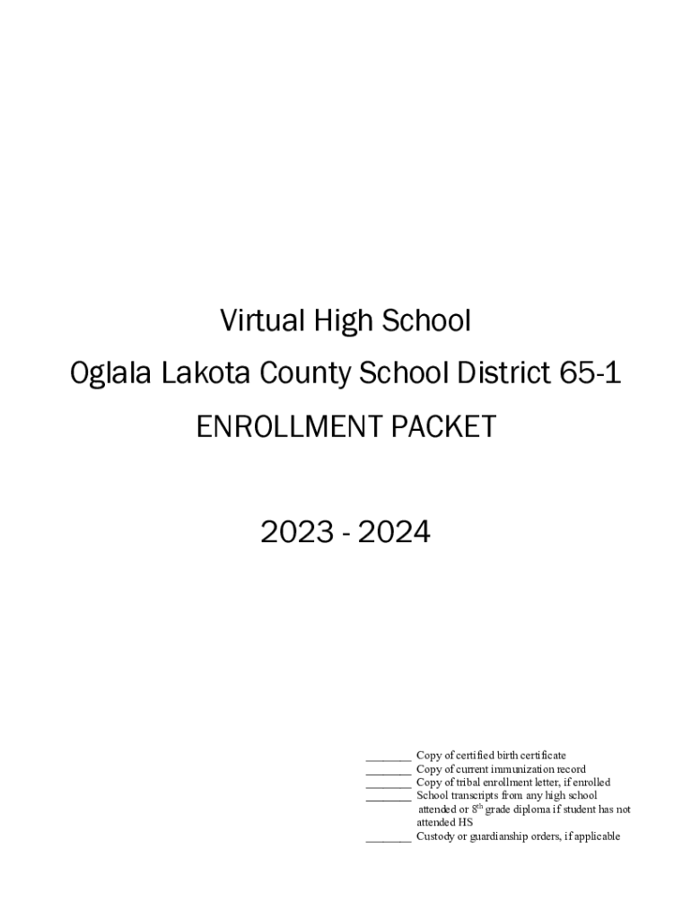 Virtual High School Gala Lakota County School District 651 ENROLLMENT PACKET 2023 2024___ ___ ___ ___Copy of certified birth certificate Copy of current immunization record Copy of tribal enrollment