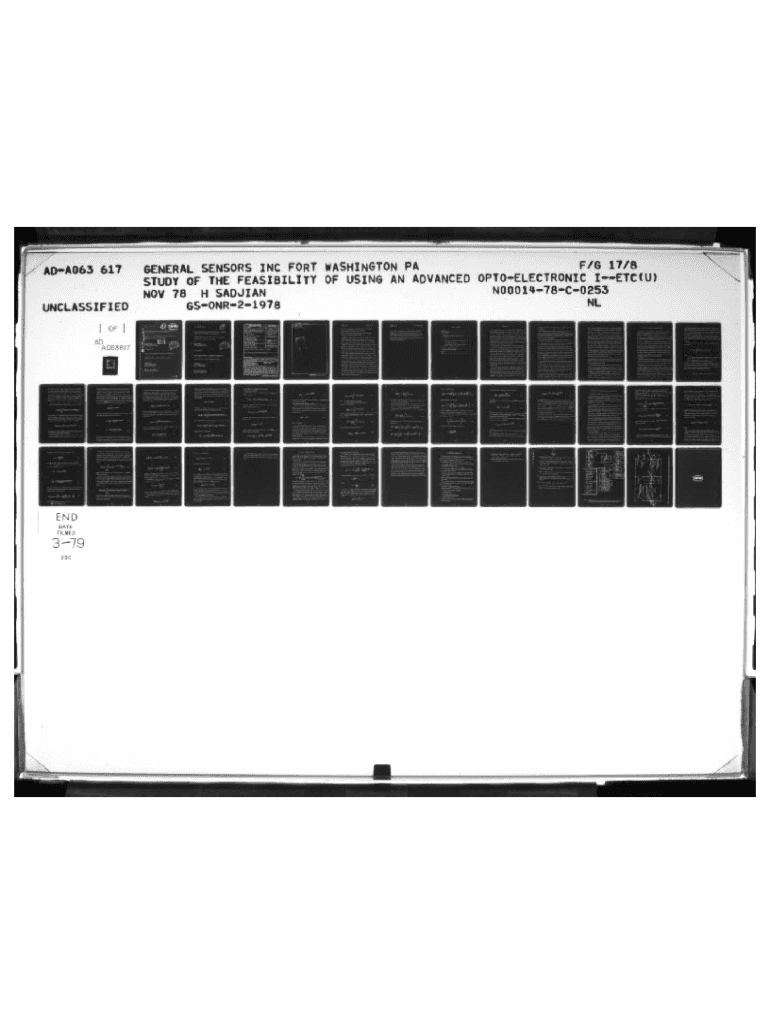 . ADA063 617 IPICLASSIFIEDF. G 17/B GENERAL SENSORS INC FORT WASHING TON PA IT C (U) ONTO ELECTRONIC THE FEASIBILITY OF USING AN ADVANCED STUDY OF N0001 78 C0253 NOV 78 H ADRIAN pit. GSO NR 21978IILfl