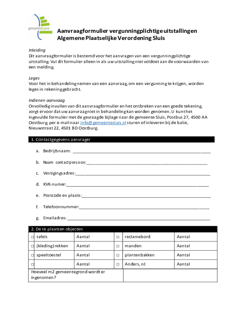 Aanvraagformulier vergunningplichtige uitstallingen