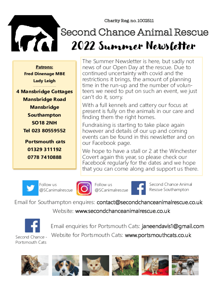 Charity Reg. No. 1002511Second Chance Animal Rescue