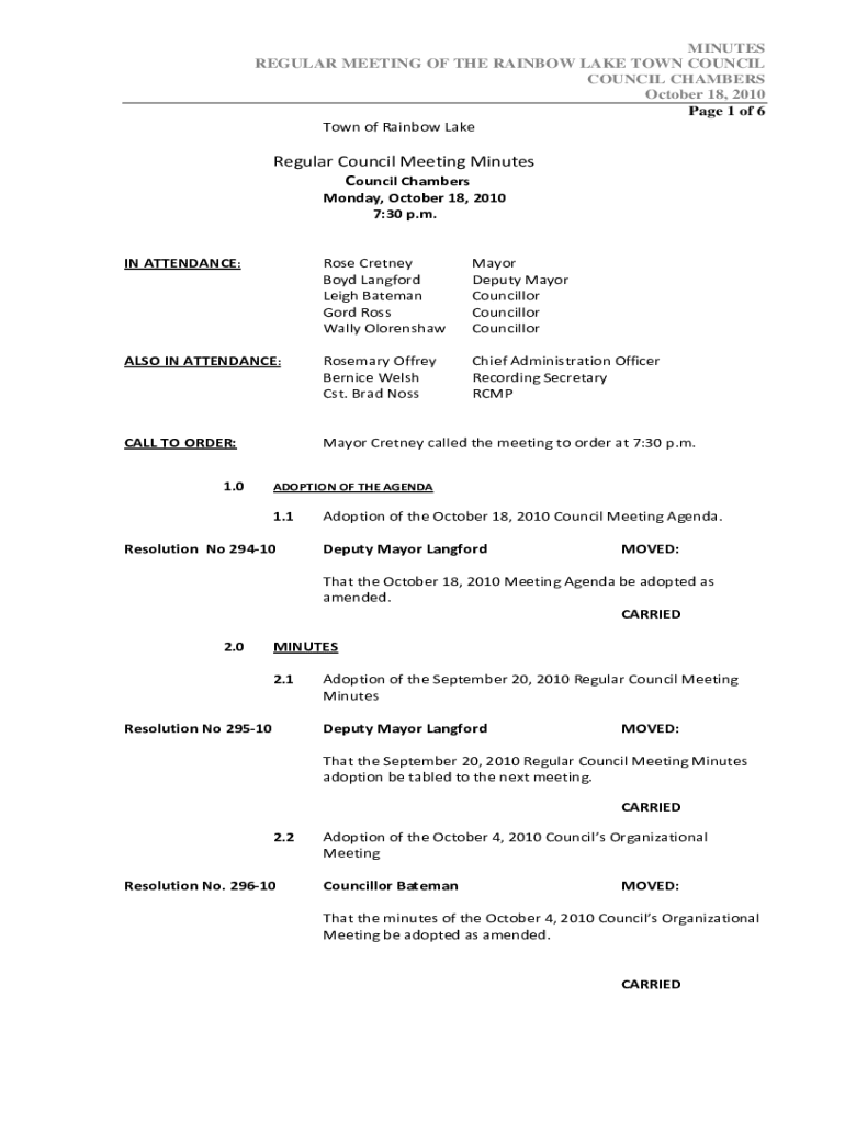 Town of Rainbow LakeRegular Council Meeting Minutes