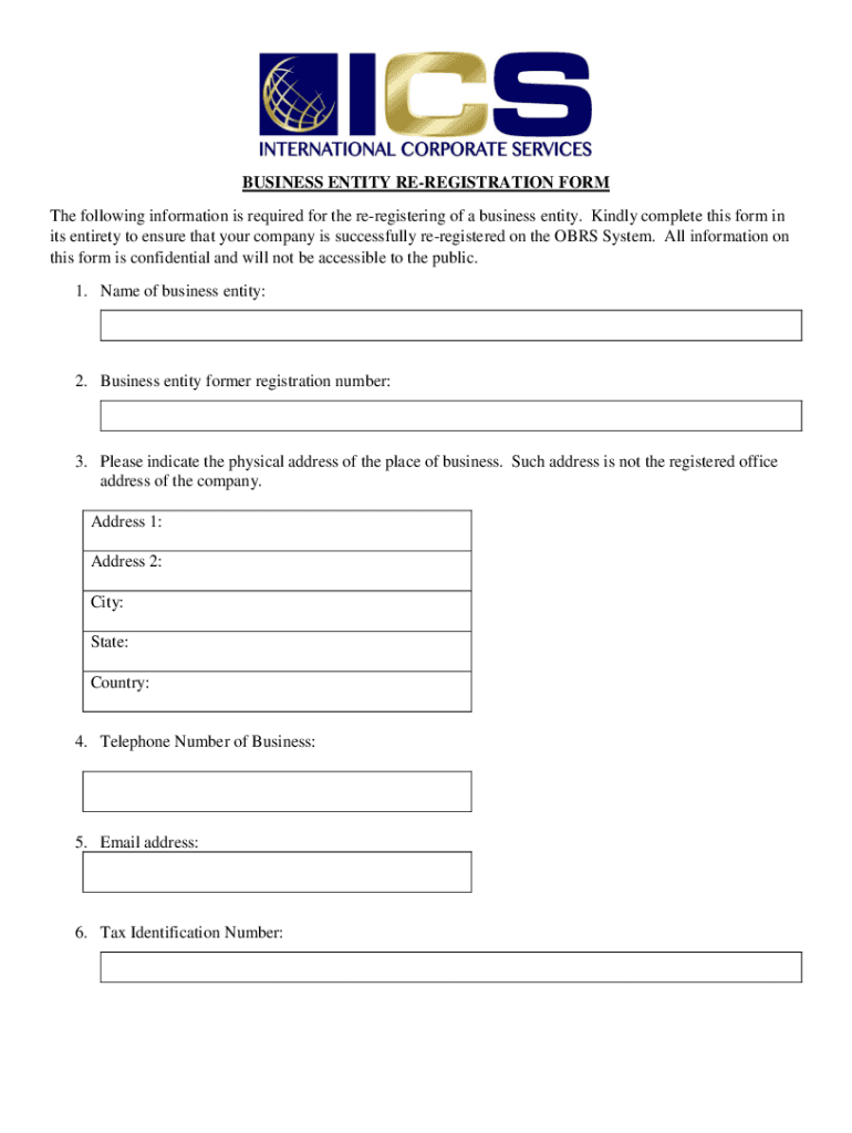 Business Entity Re-Registration Form is not the form you're looking for?Search for another form here.