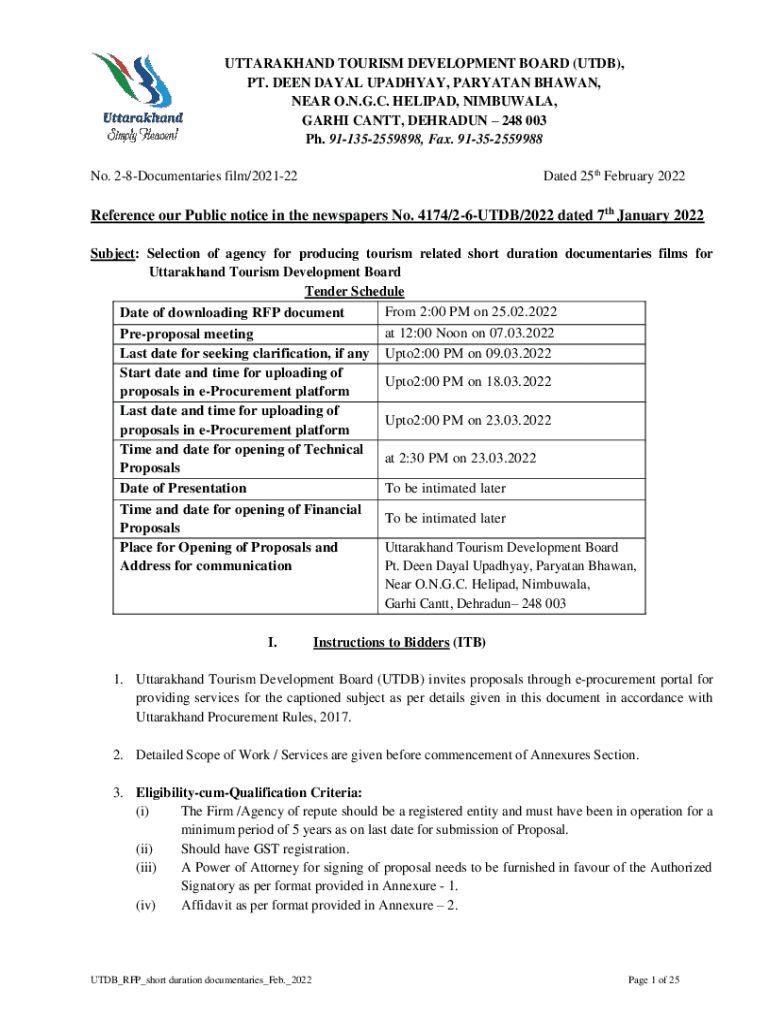 UTTARAKHAND TOURISM DEVELOPMENT BOARD (UDB),