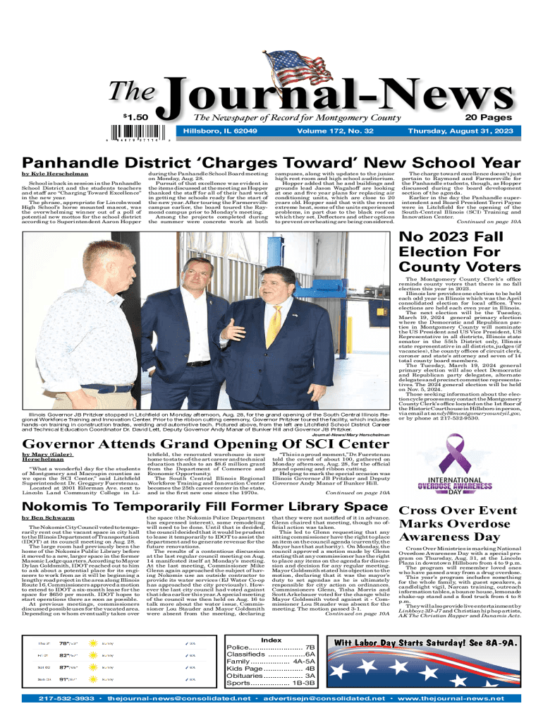 JThe$1.50The Newspaper of Record for Montgomery CountyHillsboro, IL 62049Volume 172, No. 3220 Pages Thursday, August 31, 2023Panhandle District Charges Toward New School Year