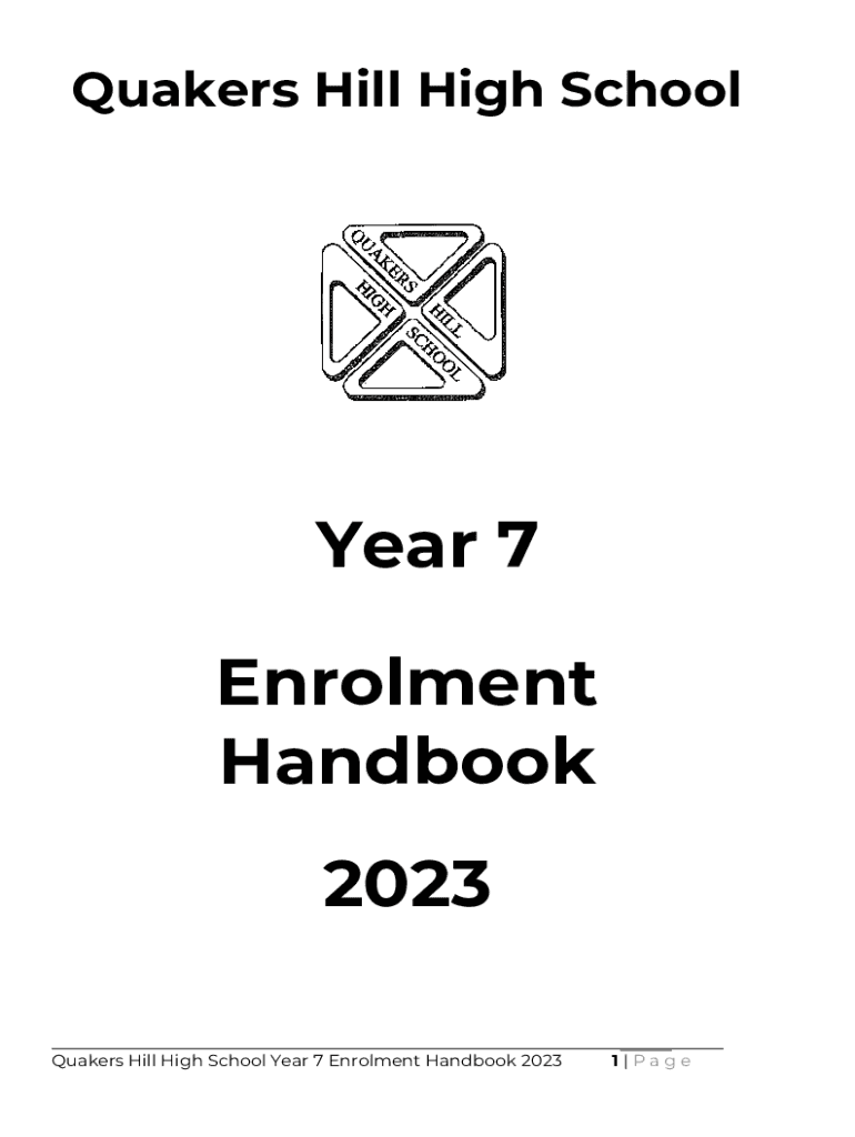 Quakers Hill High SchoolYear 7 Enrolment Handbook 2023 Quakers Hill High School Year 7 Enrolment Handbook 2023___ 1|PageAn Opening Word From The PrincipalEven though Im a terrible cook I do have this