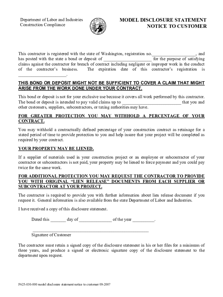 Get the free Disclosure Statement Notice to Customers (F625-030-000)